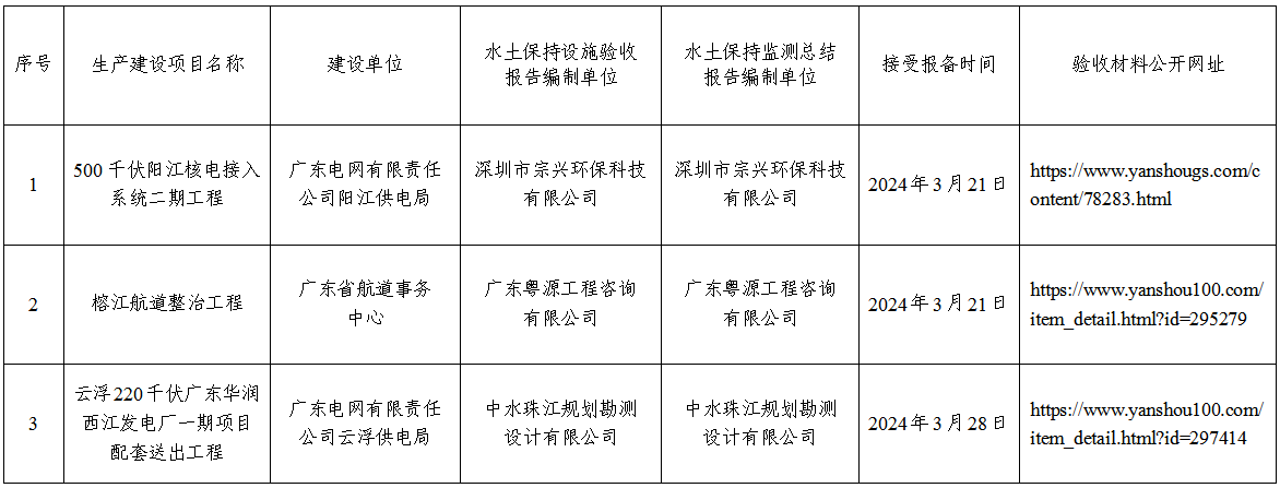 500千伏阳江核电接入系统二期工程等10个项目水土保持设施自主验收报备公示