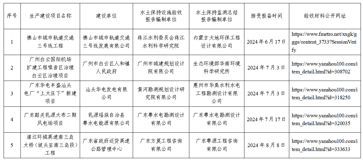 佛山市城市轨道交通三号线工程等5宗项目水土保持设施自主验收报备公示