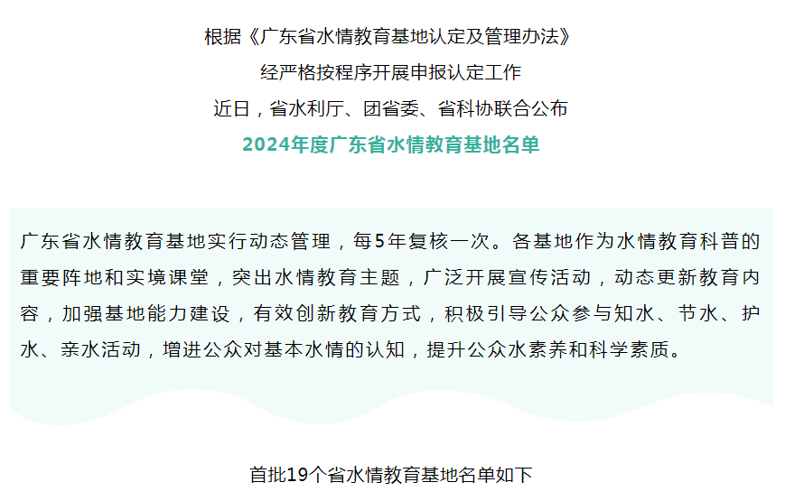 首批广东省水情教育基地名单公布!
