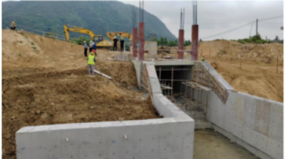1.**水闸重建工程的箱涵基坑开挖深度约17m,属于超过一定规模的危险性较大单项工程,原已批复的设计开挖方式为分层放坡开挖,后续设计变更对基坑开挖坡度进行了调整,并在局部区域采用了“土钉+钢筋网喷锚”护坡措施。但施工单位未根据调整后的开挖及支护方式重新编制施工专项方案,也未组织履行专家论证和审查等审批手续。此外,箱涵左侧边坡未实施“土钉+钢筋网喷锚”的护坡措施,且该处土体较为松散。根据水利部《水利水电工程生产安全重大事故隐患判定导则》(SL/T 842—2025)第4.1.3条,判定为重大事故隐患。